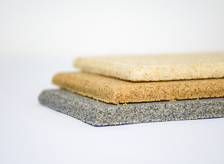 微粒材料是一種新型綠色裝飾材料,具備優(yōu)異的聲學(xué)性和物理性能。該材料是以天然砂粒或經(jīng)環(huán)保處理的固廢顆粒為骨料,以環(huán)保膠凝劑,通過壓振工藝,生產(chǎn)的具有大量相互連通的微小空隙的多孔材料。